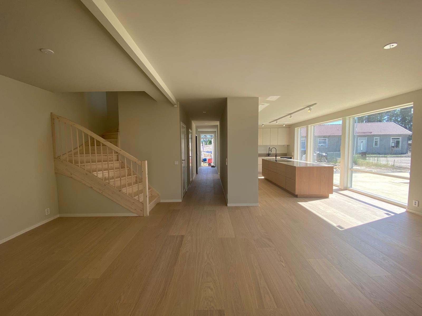 Härligt hus med mycket vinklar och stor rymd i sällskapsytorna med högt i tak